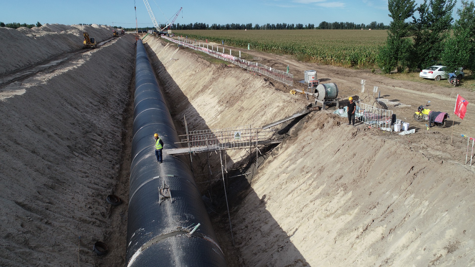 我單位施工段為平原區(qū)管線段樁號(hào)T264+104.97-T275+474.97,線路長(zhǎng)度11.37km,均為PCCP管線施工,單管同槽鋪設(shè),管徑DN3200。