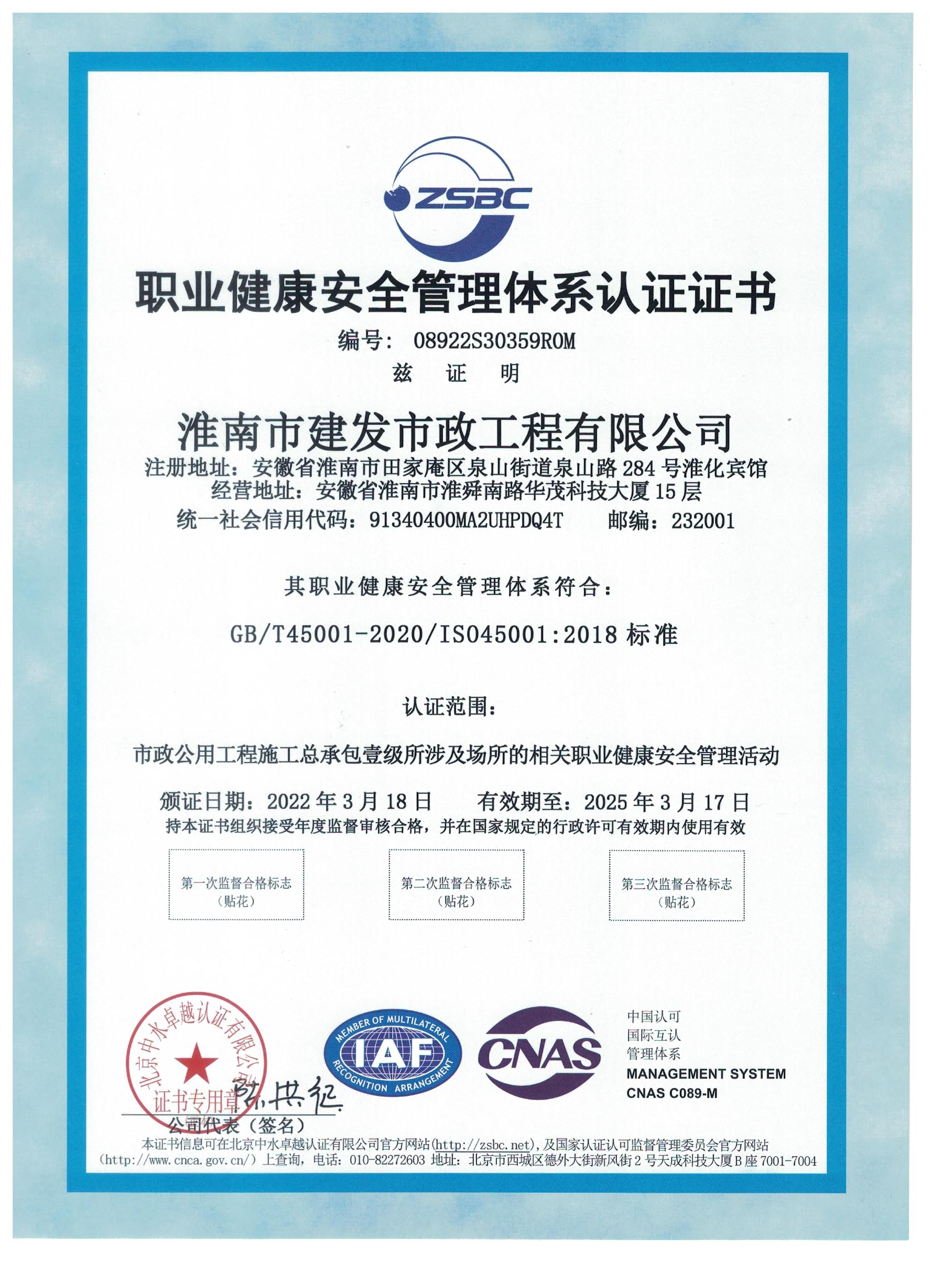 近日,公司收到北京中水卓越認(rèn)證有限公司核發(fā)的ISO9001:2015質(zhì)量管理體系、ISO14001:2015環(huán)境管理體系及ISO45001:2018職業(yè)健康安全管理體系認(rèn)證證書(shū),標(biāo)志著我司順利通過(guò)2022年度“三體系”初審認(rèn)證。